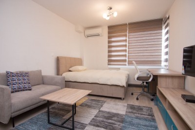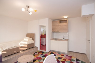 Ideal for solo travellers, our Single Bed Studio is not too big, not too small, just right! Its ideal for one person. This studio is 25m2 and includes: Bedroom with a queen size bed, living room, integrated kitchenette and a bathroom. All studios have compacts desks, complimentary WiFi, air conditioning and hair dryers.